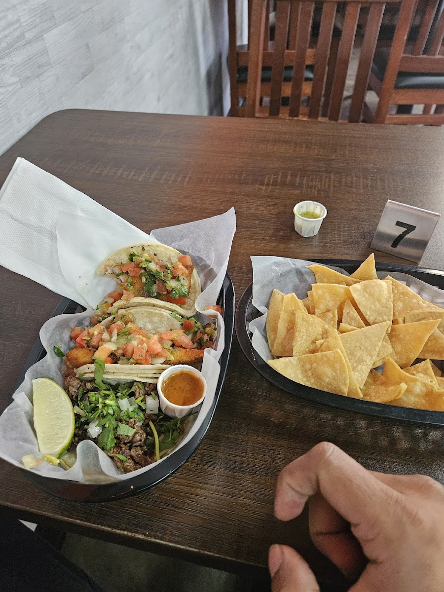“ First time here and truly enjoyed the taco. Food made pretty quick and easy and quick to consume. Combo #1 of Asada, Chicharron, Horchata. Plus got a nice pen. ”